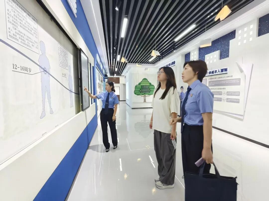 活动的首站是色彩明快、互动感十足的未成年人综合保护中心。在“法治之光”展区,互动展墙上的动画瞬间抓住了孩子们的眼球。干警们化身“法治老师”,用孩子们听得懂的语言,生动讲解宪法赋予他们的权利,并特别点明了“12周岁”“14周岁”“16周岁”这些重要的法律节点。“原来到了一定年龄,做错事就要承担责任了呀!”一位小朋友恍然大悟地说道,法治的种子悄然在心田种下。