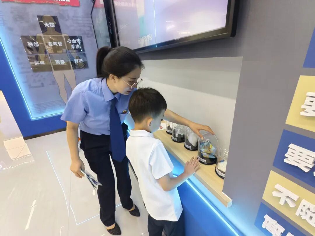 在“歧路青春”展区,干警们通过贴近生活的例子,清晰剖析了逃课、校园欺凌等不良行为如何一步步滑向犯罪的深渊。“就像走路,偏离了正道就可能掉进陷阱!”干警形象的比喻让孩子们听得格外认真,明白了法律红线不可触碰的道理。