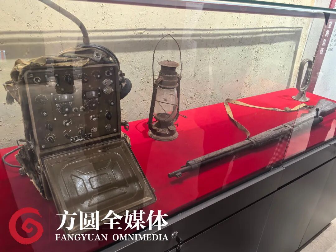 上徐马交通站展柜中摆放着发报机、枪支等抗战时期的老物件。(摄影:方圆记者 陈星岚)