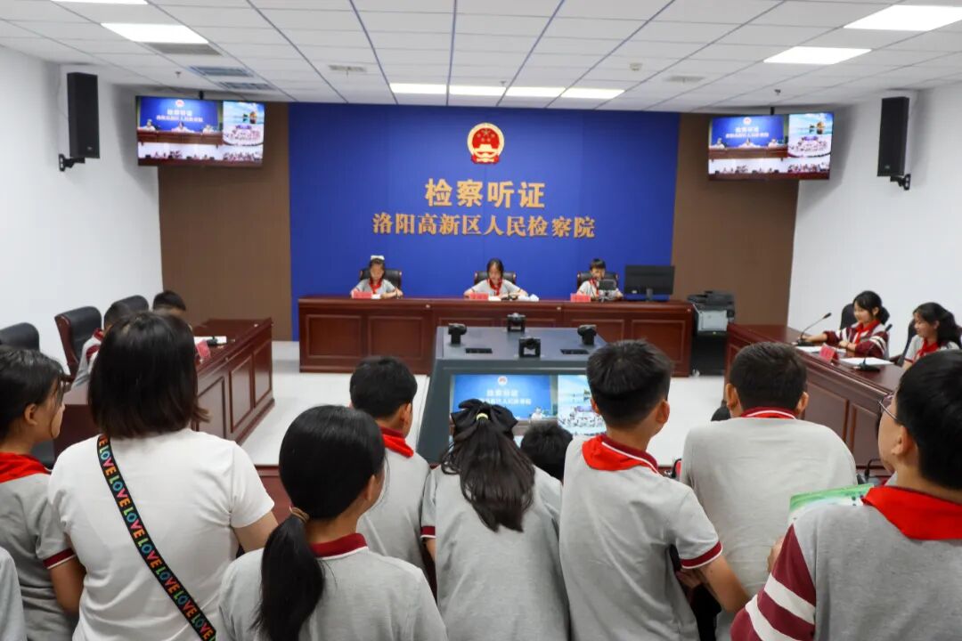 为提高学生守法、学法、懂法、用法的意识,预防青少年学生违法犯罪行为的发生,5月31日,区检察院邀请伊滨区第二实验小学十余名学生来到区检察院检察听证室,举行了一场特别的模拟检察听证。